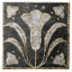 O azulejo de mármore Art Deco estilizou o ornamento floral com bluebells. Imitação de azulejos de mármore com contorno de ouro