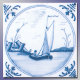 Arte cênica Classic Delft de um veleiro em um lago calmo retocado e reproduzido de um azulejo antigo real. Ele tem um toque pintado à mão e apresenta elementos azuis e brancos nos cantos. Clique em Personalizar para adicionar seu nome ou mensagem.