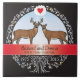 Celebre o aniversário de casamento rubi do seu casal amoroso da natureza favorito com esta personalizável saquê! Galhos brancos e pássaros sobre fundo preto e vermelho cercam um par de cervos de cauda branca que estão cada um pensando em um coração. Dois nomes, o número de anos juntos, o ano do casamento e o ano atual são apresentados perto do centro e podem ser personalizados. Perfeito para um par amoroso que também ama o exterior.