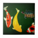 Koi colorido e uma tartaruga apreciam seus arredores serenos. Na laranja, no ouro, no verde e no azul.