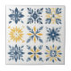This decorative tile captures the vibrant essence of Mediterranean style, featuring nine intricate floral and geometric patterns in a charming blend of navy blue, yellow, and white. Inspired by the bright colors and organic shapes of Mediterranean coastlines, this tile is more than just a decorative piece—it's an evocation of the freshness, warmth, and tranquility of a sun-drenched seaside landscape.