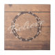 Acredite em design de texto de Natal com coroa e decoração de neve em fundo de madeira rústica
