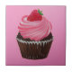 Uma pintura acrílica de um cupcake delicioso com glacé rosa e um morango. Estes azulejos adoráveis vão adoçar a tua casa!