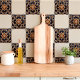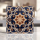 Inspirado pelos intrincados padrões geométricos do Palácio de Alhambra, esse azulejo cerâmico traz um toque de elegância mórbida para sua casa. O design apresenta um design complexo e interligante em azul marinho, ouro, creme e terracota. Este azulejo é perfeito para adicionar um sotaque ousado, exótico e historicamente rico a banheiros, cozinhas, pisos ou paredes. Uma maneira maravilhosa de adicionar elegância à sua casa.