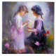 Uma pintura gerada por IA de duas meninas admirando uma flor. Perfeito para um quarto de berçário ou de menina.