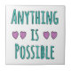 A charming and uplifting design featuring the inspirational phrase "Anything is Possible" in soft light teal, accented with two sets of delicate pink hearts to spread positivity and love.