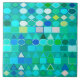 Azulejo modelado nas bandas de formas geométricas, em uma tomada moderna em um teste padrão tribal, nas cores de vidro do mar do aqua, da turquesa, do verde de garrafa, dos azuis cobaltos, e do branco de quartzo