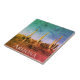 azulejo cerâmico de arizona, com uma imagem única de cacto de três cactos saguaro que apreciam o sol perto de Tucson. Com a inscrição personalizável branca, você pode adicionar suas próprias informações. Um presente divertido das suas férias no sudoeste!