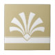 Elemento de flor geométrico em forma de deco de arte branca elegante, ornamento num azulejo cerâmico decorativo de fundo bege. Design chic elegante, perfeito para um interior moderno ou de arte deco retro estilo vintage.