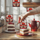Azulejo De Cerâmica Art Deco Red Black White Abstract Floral
