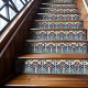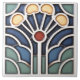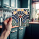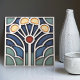 Channel the bold sophistication of the Art Deco era with this striking ceramic tile. The design features a perfectly symmetrical, stylized tree motif with a sunburst or fan-like spread. Deep navy blue and dusty sage green provide a cool, elegant base, beautifully contrasted by warm, amber-yellow blossoms and a central, eye-catching terracotta red circle. Each colored section is crisply defined by raised, off-white lines with a subtle bronze edge, reminiscent of classic cloisonné or stained-glass artistry. This tile is a testament to geometric precision and organic inspiration, making it a perfect accent for a historic home or a touch of vintage flair in a modern space.