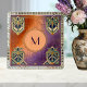 Framed by a thick border of gold and orange mirror tiles and accented with stylized Palm Springs palm tree graphics, this tile allows you to add your own custom initials in a bold, elegant typography. A premier choice for personalized graduation gifts, writer's housewarmings, or unique anniversary keepsakes. The combination of peach and gold is the epitome of 1970s sophisticated glamour