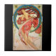 1898 Art Nouveau litograph poster do artista checo Alphonse Mucha (1860-1939). Linda mulher com um vestido vermelho, flores em seu longo, fluente, cabelo vermelho brilhante, arquejada pelas costas, olhando sobre os ombros encarnudos, em pé sobre os dedos dos pés.