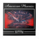 Um pássaro mitológico de Phoenix Americano a Ascensão das cinzas nesta design por Jason Girard. Pintura em cores patrióticas vermelho, branco e azul sobre fundo preto com letras.