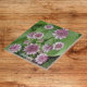 Azulejo cerâmico que apresenta uma foto de flores cor-de-rosa florescentes de Astrantia, comumente conhecidas como Masterwort. Um design floral adorável! Selecione o tamanho do seu azulejo. Faz uma bonito trivet de cozinha!