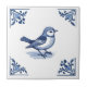 Azulejo De Cerâmica Ave com cantos Florais Azul e Branco Delft