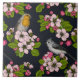 Azulejo De Cerâmica Aves e Blossomas em preto