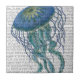 Azul-água-viva 1 por Fab Funky. Possui uma bela água-viva flutuante azul com uma página de livro para fundo.|191847D