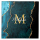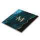 Este azulejo apresenta um fundo de mármore elegante e glamouroso com detalhes geodésicos de gemstone e sotaques dourados falsos. O monograma combina o guião manuscrito e as fontes sans serif modernas para um aspecto elegante e sofisticado. Isso fará o presente ideal, pois ele pode ser personalizado com um nome e uma inicial. As matizes azuis profundas o tornam perfeito para outono e inverno.