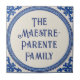 Azulejo Mediterranean Blue Custom House Name Plate Plaque Sign. You can edit the text in the center, change the font, change the color, size, etc. Gift these tiles as custom name coasters for each family member, for friends or teams, use them for home accents on your bookshelves, in your living rooms and bedrooms, or as mosaic wall art with other tiles. Or leave the central space empty, and use as decorative backsplash ceramic tiles.