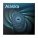 Uma imagem fractal azul parecida com um grupo giratório de baleias sob gelo polar; talvez beluga ou baleias-da-índia que frequentam os polos. A leitura de texto "Alaska" aparece em azul e branco brilhantes.