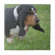 Cara adorável de um cão de basset com as orelhas de oscilação longas.