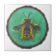 Uma pintura digital de uma abelha grande sobre um fundo verde, com uma borda preta. Trabalho de arte Copyright ©2016 Kimberly J Tilley.