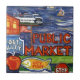 Um desenho colorido do beco do cargo e o mercado público assinam acima de Puget Sound no mercado de lugar de Pike de Seattle.