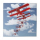 Arte do biplano do vintage reminiscente dos anos 20, os anos 30, anos quarenta, vôo de formação retro do art. dos biplanos no céu azul brilhante.