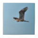 Herão azul excelente em voo é uma foto natural ideal, em azulejo de cerâmica decorativa.