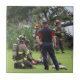 Um azulejo cerâmico com foto de bombeiros.