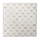 Azulejo branco com borboletas douradas.