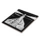 Uma ilustração a preto e branco do farol no final do banco de pedras em Nelson, Nova Zelândia. Este farol está no corte perto e tem a ilha de costa ao fundo.