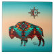 Brilhe sua casa com este único "Um dos tipos", Azulejo de Búfalo do Sudoeste e Cerâmica do Sol! Ele apresenta um Buffalo Sudoeste e Sol em um Fundo Turquesa e Sunset Laranja! Este é um Design de Arte Original "Um dos Tipos" do Artista Kerry Miller.