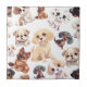 Um design de padrão de Cachorro Puppy com ilustrações de aquarela de diferentes raças de cães, como, Dalmatic, German shepherd, Bulldog, Pug, Poodle, Spaniel. Um adorável azulejo de cerâmica é uma decoração na parede do excelente para amantes de cães, colchões de cães, quartos e berçários infantis. A cor de fundo pode ser adicionada se necessário.