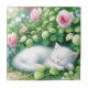 Gato branco doce dormindo debaixo de um cheio de rosas cor-de-rosa. Ai é feito em estilo aquarela.