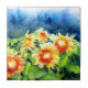 Azulejo De Cerâmica Campos de girassol de aquarela