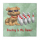 Cão que veste óculos de sol com pinos de boliche - a boliche é meu jogo