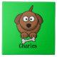 Azulejo De Cerâmica Cão-marrom com osso personalizado em verde