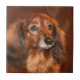 De cabelos compridos, o vermelho coloriu o azulejo da foto da cara do dachshund