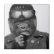 As características deste design um gorila vestiram-se em um casaco de cabedal, em óculos de proteção e em capacete.