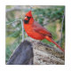 Cardeal vermelho brilhante decora o azulejo cerâmico. Acessório brilhante para decoração domiciliar.