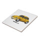 Um carro clássico amarelo feliz. Desenhado no estilo de desenho animado.