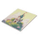 Esta ilustração esbranquiçada apresenta um castelo mágico rodeado por um jardim verde, com nuvens suaves flutuando sobre as escadas e enrolando até à entrada do castelo. A cena do sonho convida-vos a imaginarem entrar num cheio de fadas de aventura e maravilha.