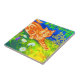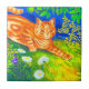 Azulejo com a pintura de animais de Louis Wain Cat Stalking (1860-1939). Um gato listrado de laranja anda num campo verde à noite. Flores brancas, roxas e vermelhas estão no primeiro plano. Um presente maravilhoso para amantes de gatos e arte inglesa.