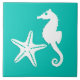 Azulejo De Cerâmica Cavalo marinho e estrela do mar - branco na