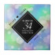 Celebre o 34º aniversário de casamento com este azulejo na moda! As letras esbeltas a preto e branco com confete hexagonal em um fundo opal iridescente acrescentam um toque memorável para esta ocasião especial e marco extraordinário. Personalize com os nomes dos casais e anos de casamento. Design © W.H. Sim. Mais informações em zazzle.com/expressionsoccasions