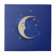Azulejo De Cerâmica Celestial Crescent Moon with Face Gold Dark Blue
