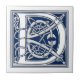 Uma bela e decorativa letra celta emboscada iluminada com cabeças de dragão de cinza sobre um fundo azul escuro e veludo.