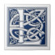 Uma bela e decorativa letra celta emboscada iluminada com cabeças de dragão de cinza sobre um fundo azul escuro e veludo.